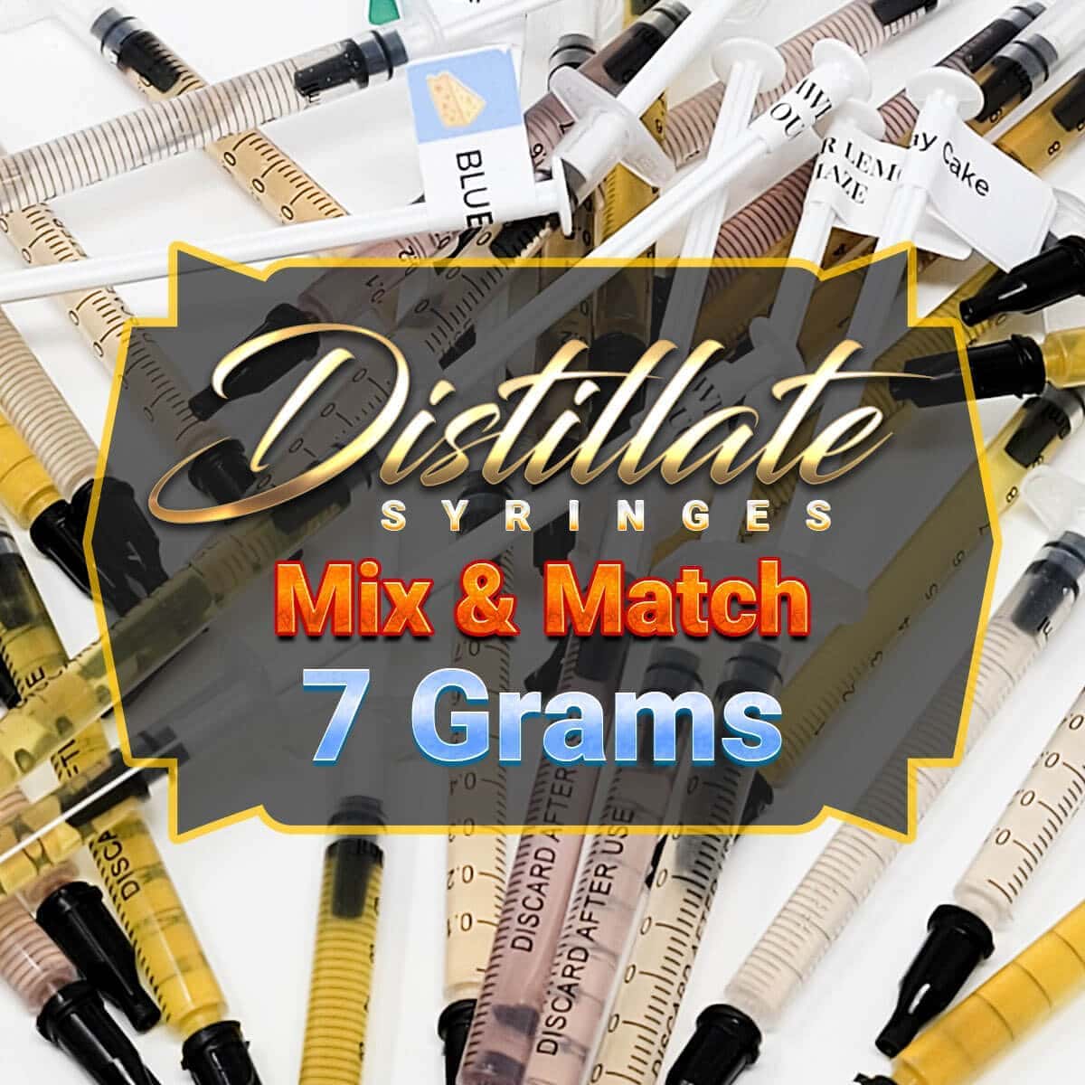 Select up to 7 different strains from our Distillate category and simply add to cart. Each strain comes in 1 Gram variation for a total weight of 7 grams. Our mix & match options allow you to try different strains at ease!