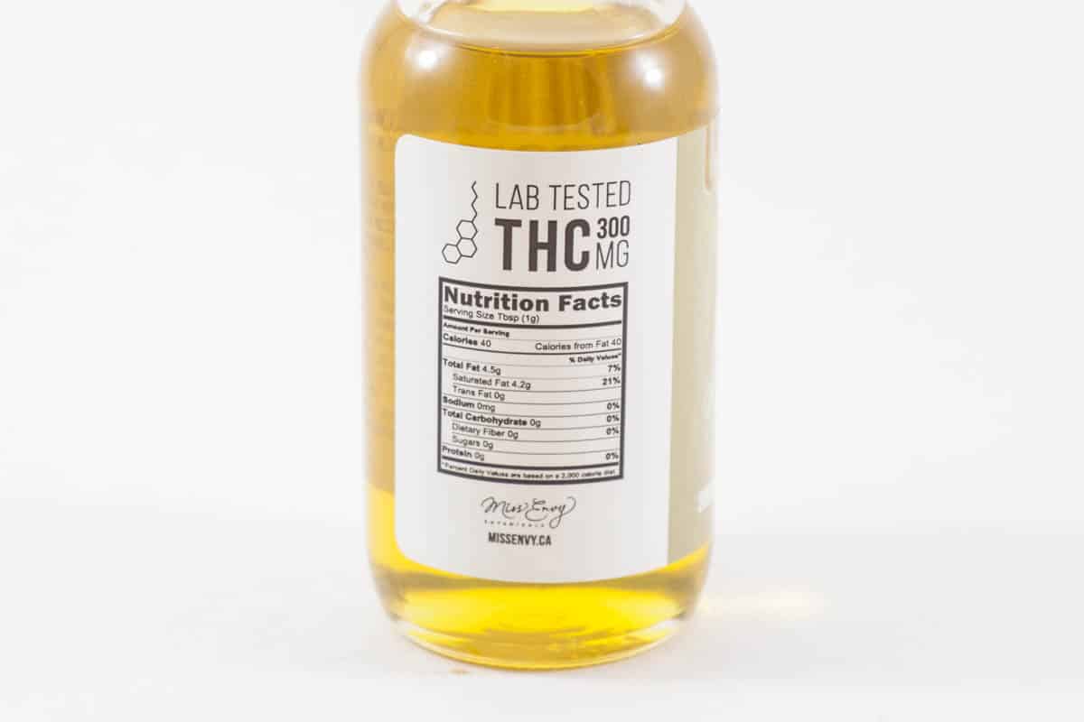 - 300 mg THC (44.38 mg THC per tbsp. or 14.79 mg THC per tsp.)